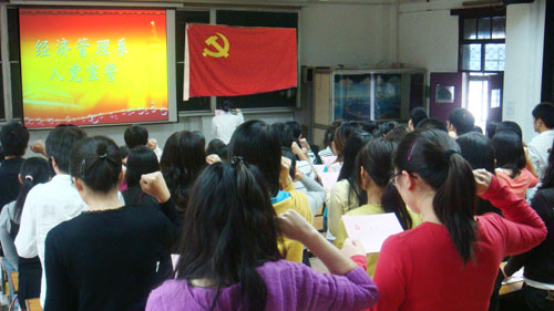 9月22日下午,经济管理系在大学生活动中心举行了庄严隆重的新党员入党宣誓大会。