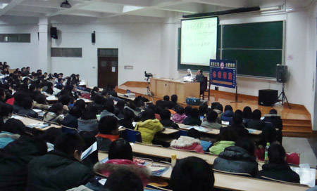 陈文灯教授在给同学们讲课辅导 12月11日晚,文昌院112教室座无虚席。中央财经大学数学部主任、享受国务院特殊津贴的著名考研数学辅导专家陈文灯教授,给贝博官网学生作了一场考研中的数学问题讲座。 陈教授的助理首先向同学们介绍了我国目前的考研形势,指导同学如何树立正确的考研目标。其幽默诙谐的语言,深入浅出的讲解使同学们受益匪浅。 陈教授在讲座中强调指出 “掌控数学,研究生非你莫属!”,接着就近几年考研数学出题模式作了深入地分析。并例举了一些典型案例,结合自己的经历为大家讲述了考研的心得和经验,使同学们对考研的数学复习有了更深刻地认识。 最后,同学们纷纷上台与陈教授交流,陈教授也就大家提出的疑问耐心地作了解答。 本次由经管系分团委和学生会主办的讲座,让同学们对考研数学有了全方位的了解,同时指导大家如何设定合适的考研目标,增强了同学们考研的信心和决心。