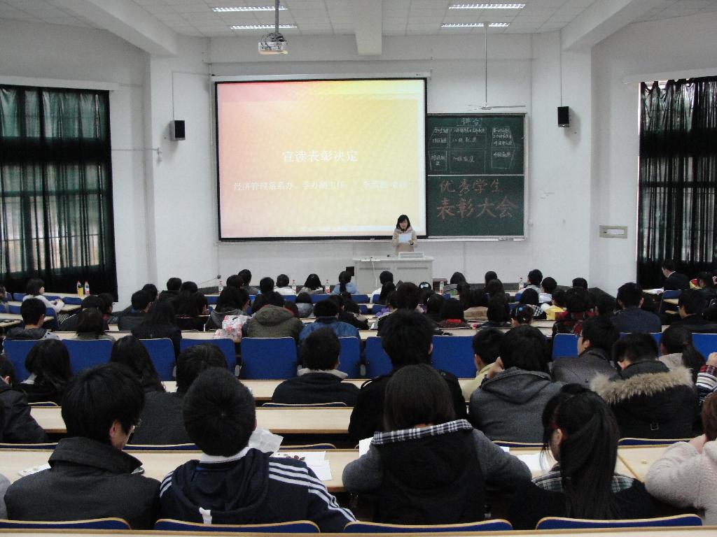 3月29日下午,经济管理系在文昌院110教室召开了2010年度社会活动优秀团队学生表彰大会。经济管理系党总支书记黄苏宁、学办副主任李清源、全体辅导员及各班学生干部参加了大会。会议由系分团委书记羊栋主持。