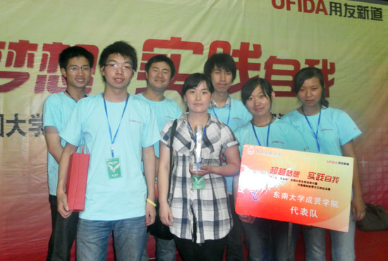 在6月2--3日举行的第七届“用友杯”全国大学生创业设计暨沙盘模拟经营大赛江苏区决赛中,贝博官网代表队经过顽强拼搏,荣获金奖,并取得代表江苏省参加全国总决赛的资格。 本次江苏区决赛共有来自全省的40支代表队(本科组)参赛,其中不乏往年在国赛中取得好成绩的院校。贝博官网代表队由圣贤(08级物流专业)、朱超(08级物流专业)、邓寿增(09级物流专业)、赵文博(09级财管专业)和张亚楠(09级模具专业)等五位同学组成。他们在去年贝博官网举行的“成贤杯”沙盘大赛上脱颖而出,随后利用课余时间在指导教师张利娜和企业管理协会会长、上届参赛队员许延昌同学的悉心指导下进行了近半年的刻苦训练。 比赛期间,参赛队员们置身于商业实战场景,面对激烈的市场竞争,始终以饱满的热情,出众的全局观念和规划能力,展现了贝博官网学生扎实的综合应用与实践能力和优秀的心理素质,获得了主办单位和兄弟院校师生的一致好评,为贝博官网争得了荣誉。这是贝博官网代表队继2009年在“用友杯”第五届全国大学生创业设计暨沙盘模拟经营大赛进入全国总决赛后,再次挺进“用友杯”全国总决赛。 第七届“用友杯”全国大学生创业设计暨沙盘模拟经营大赛由教育部高等教育司支持、教育部高等学校工商管理类专业教学指导委员会指导、高等学校国家级实验教学示范中心联席会主办、用友新道科技有限公司协办。从2005年首届全国大学生ERP沙盘对抗赛开展至今,参赛队伍逐年增加。本届大赛全国有近千所院校参赛,成为中国最有影响力的大学生赛事活动之一。