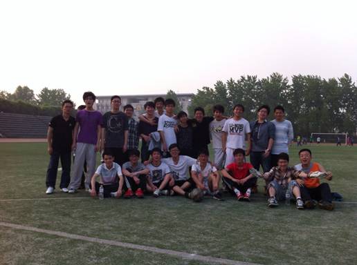 上个星期举行的专业足球赛,更好的团结了两个兄弟班级的情谊,最终是我们班5:3险胜09电子商务二班,之后大家兴奋的在一起拍照留念,珍惜着对于我们大三而言,不多的嬉闹的瞬间了。