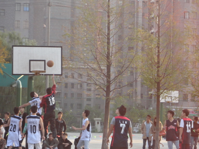 2012年11月5日下午3点40分,经济管理系第五届“新街口大洋百货杯”篮球联赛决赛拉开帷幕,电商队与物流队在桃八篮球场进行了他们最后的冠军争夺赛,现场观赛的有经管系的辅导员老师与经管系学生会各部门成员,以及来自其他各专业的同学们。
