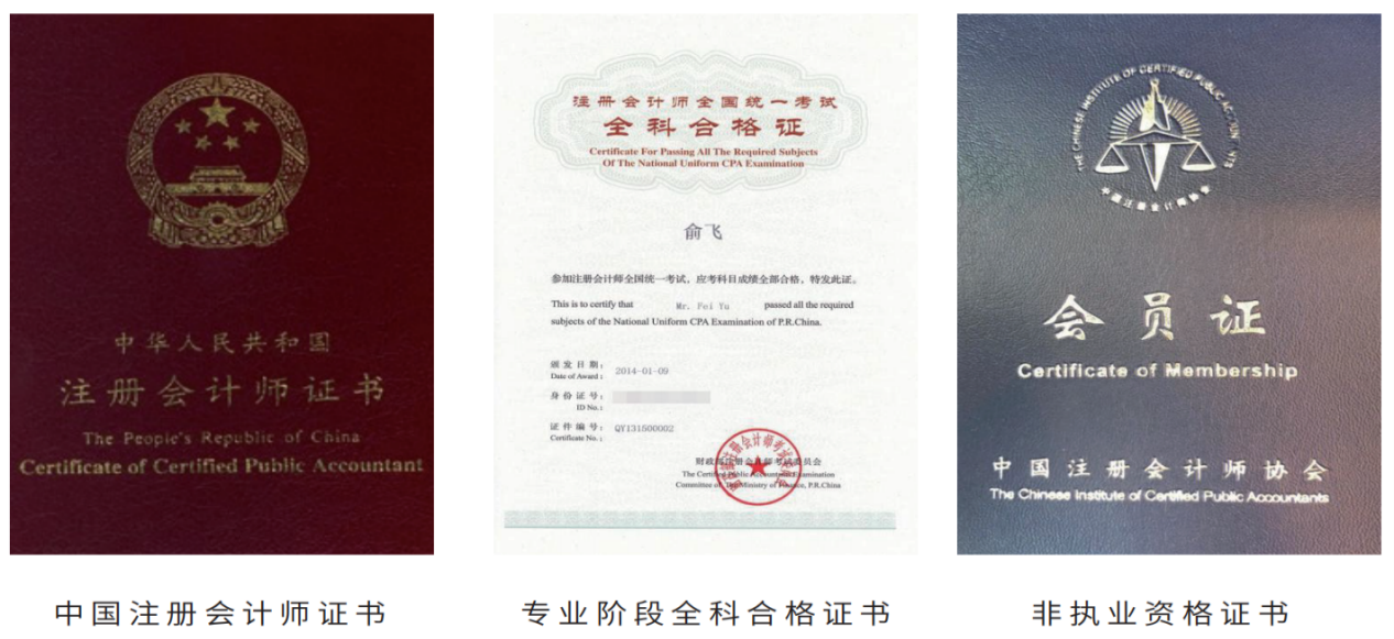 (CPA各阶段证书样张)