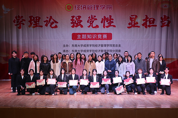 决赛现场共分三个环节。在第一环节“有问必答”中,各代表队分别举牌作答,选手们凭借扎实的理论基础,从容应对,参赛队伍得分交替上升,难分伯仲;第二环节“争分夺秒”场面十分热烈,选手们你追我赶抢答,将全场的气氛推到高潮;最为刺激的第三环节“一锤定音”,是对选手们知识储备、心理素质和应变能力的全面考验,他们的精彩回答赢得了现场观众阵阵掌声。经过激烈的角逐,国际经济与贸易党支部获特等奖,市场营销党支部获一等奖,物流管理党支部税收学党支部获二等奖,会计学党支部、财务管理党支部、电子商务党支部获三等奖。
