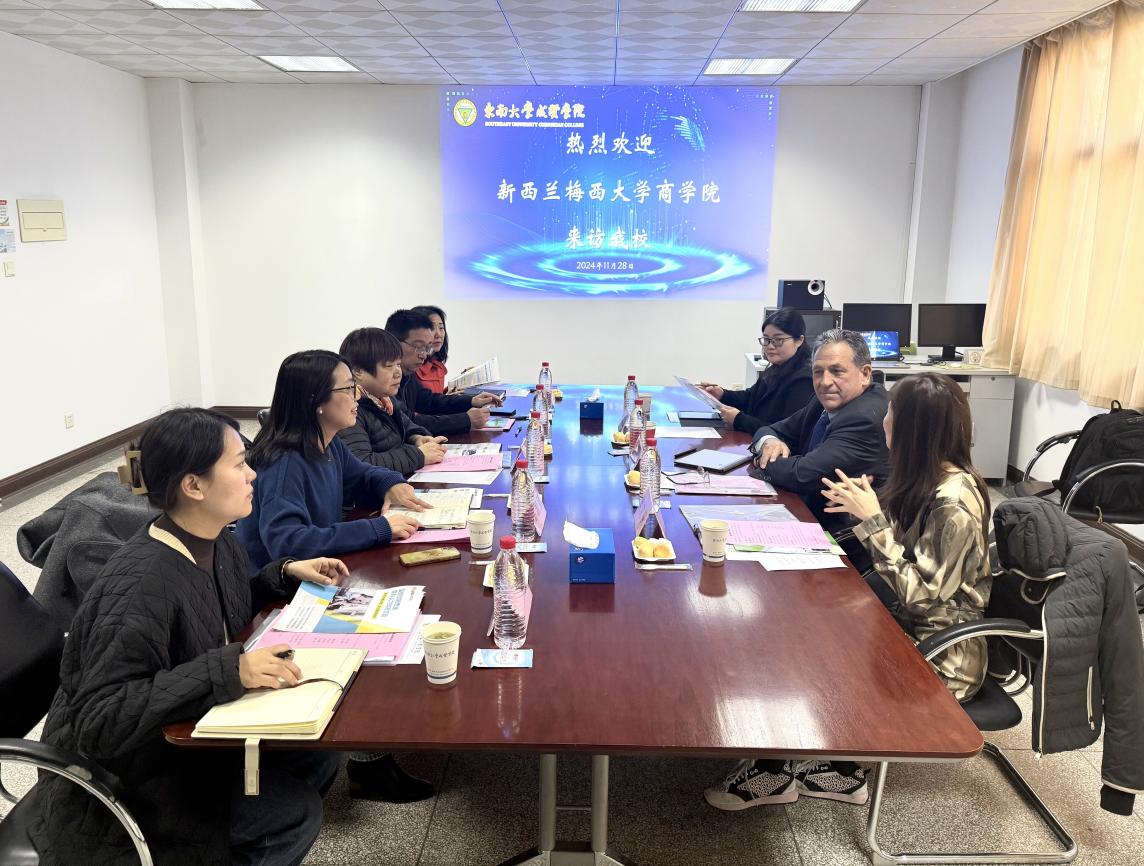 梅西大学商学院副院长、国际合作分管总监Jeffrey Stangl,高顿全球战略及合作伙伴关系负责人樊文祺,高顿校企合作事业部江苏、安徽区域负责人张美娟,贝博官网BB贝博艾弗森官方网站院长戚啸艳,发展合作处副处长周怡君,BB贝博艾弗森官方网站综合办主任程希羲,发展合作处魏泓老师参加会议,会议由BB贝博艾弗森官方网站副院长高凯丽主持。戚啸艳院长首先致辞,对梅西大学商学院一行表示了热烈欢迎,并介绍学校概况及BB贝博艾弗森官方网站的专业设置;周怡君副处长介绍学校国际交流基本情况,特别分析了BB贝博艾弗森官方网站近年的出国留学相关数据,Jeffrey院长就新西兰、梅西大学及商学院概况作简要介绍,并就拟开展的国际化合作项目作详细说明。与会各方就项目实施细节开展深入交流与讨论。