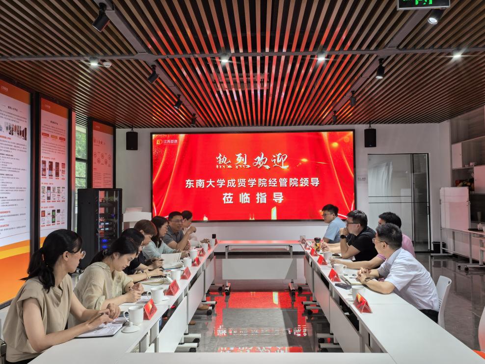 为总结BB贝博艾弗森官方网站与江苏歌德集团产教融合项目经验,探讨未来合作和专业建设发展方向,8月13日,BB贝博艾弗森官方网站院长戚啸艳、学院党总支书记李清源、副院长高凯丽、副院长孙亮带领专业骨干教师张琰、郑桂玲、李伟一行赴江苏歌德集团南京总部交流调研,集团总裁陈荣、副总裁吕小龙、李志强和2023届电子商务专业校友张辰玮热情接待。