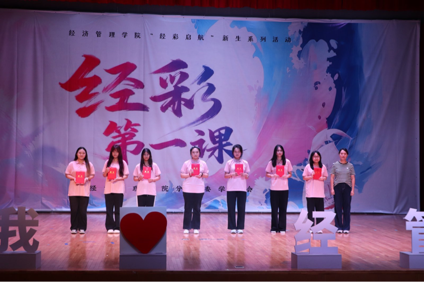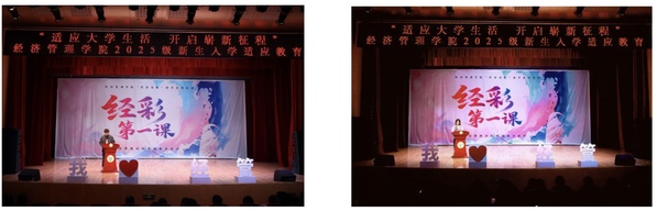 10月17日下午,由BB贝博艾弗森官方网站分团委、学生会主办的“经彩第一课”在大学生活动中心313报告厅举行。学院党总支书记潘明烽,副院长高凯丽、孙亮,综合办主任程希羲、分团委书记潘天娇及新生辅导员、班主任代表与全体大一新生共同参加活动。